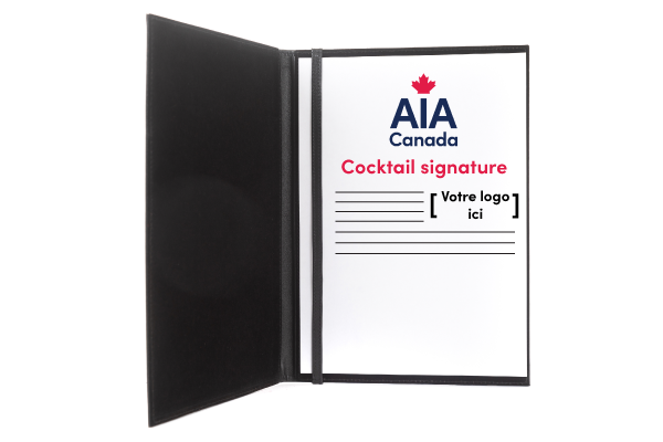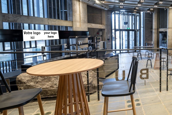 Visibilité de la marque sur le menu du bar de la réception, incluant l’affichage du logo