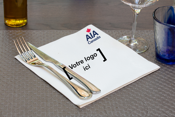 Logo d’entreprise imprimé sur une serviette cocktail personnalisée (Impression d’un côté - dimension d’item de 5 po x 5 po**) distribuée pendant la réception.